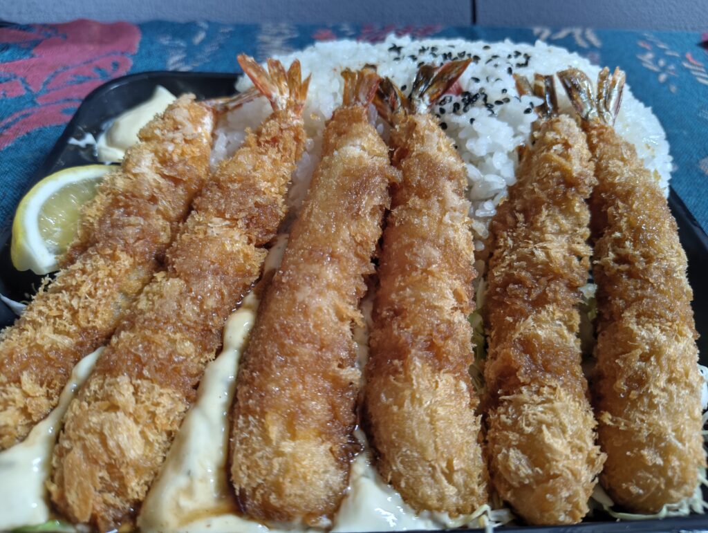 【デカ盛り弁当 はるき】 新潟駅南店レビュー|1kgエビフライ弁当1,880円の実力!衣多め・分食でコスパを最大化