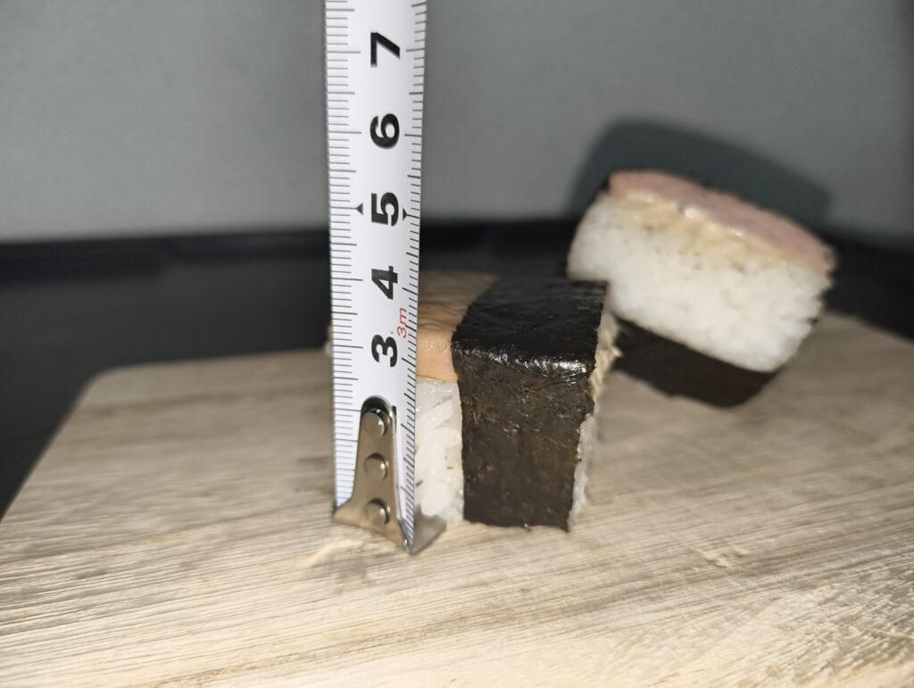 メジャー計測の結果、厚さは約3cm。SPAMとお米、そしてツナマヨがぎっちり握られています。これはひと口あたりの満足度が非常に高い設計です。この立体感こそが「おにぎり以上、弁当未満」のポジションを確立させています。