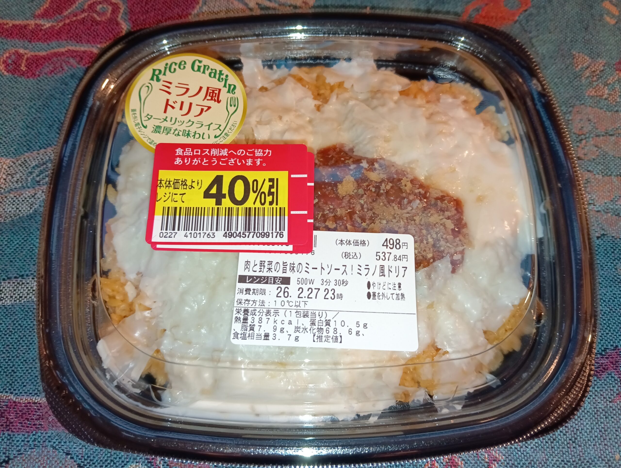 レンジで温めて蓋を開けると、チーズとソースの焦げた香ばしい匂いが漂います。見た目の戦闘力はかなり高め。しかしスプーンを入れると……「おや?ちょっと水分量が多いか?」と感じます。サイゼリヤのパラッとしたターメリックライスとは異なり、こちらは少し「べちゃっと」した柔らかめの仕上がりです。